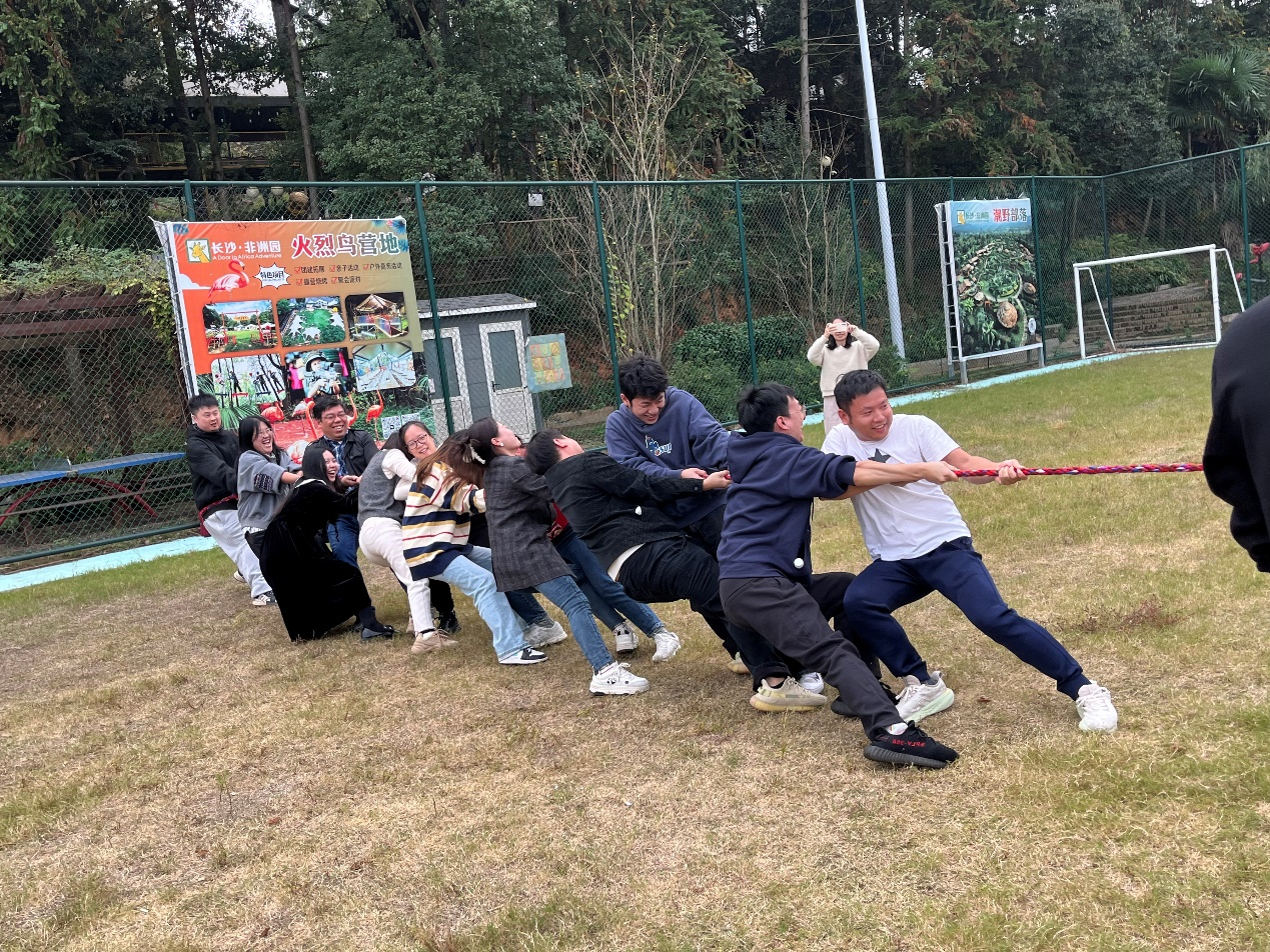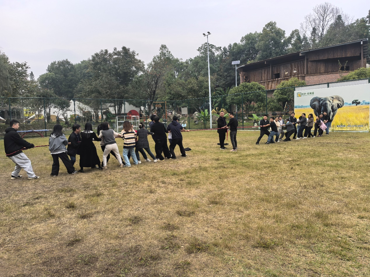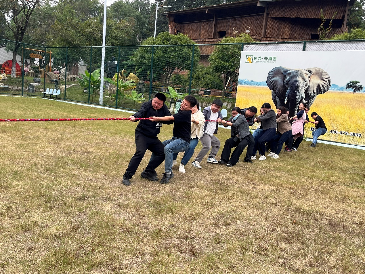 下午1:30于公司楼下出发前往非洲文化园,车程约一个小时。非洲文化园是一家集餐饮、娱乐、体闲为一体的农家乐,这里环境优美,空气清晰。至达目的地后组织拔河运动,拔河比赛不仅是体力较量,更是团队精神的集中体现,“心往一处想,劲往一处使的协作体验”让个人对集体力量有更直观的认知,印证了“狭路相逢勇者胜”的亮剑精神。不管获奖与否,队员也因共同拼搏感受到强烈的归属感,收获的不只是快乐,还有团队的凝聚力。激烈对抗与呐喊助威后有效缓解工作压力,员工普遍感到身心放松。跨部门成员通过共同目标加深了解,增强感情联系。