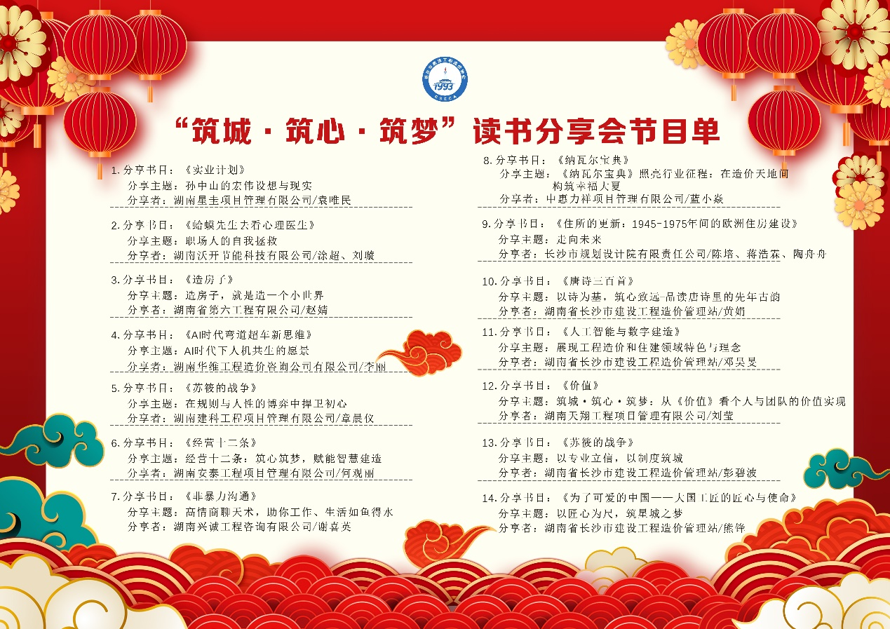 1月16日,造价行业“筑城筑心筑梦”读书分享会在长规大厦4楼报告厅圆满落幕,我司选派李丽同志参会并完成分享任务。