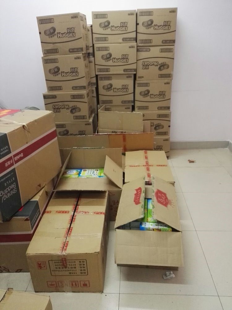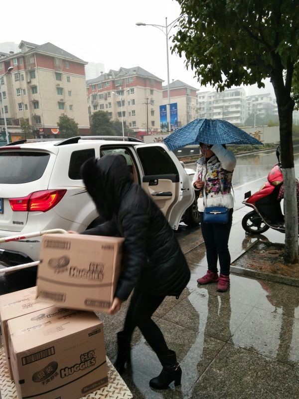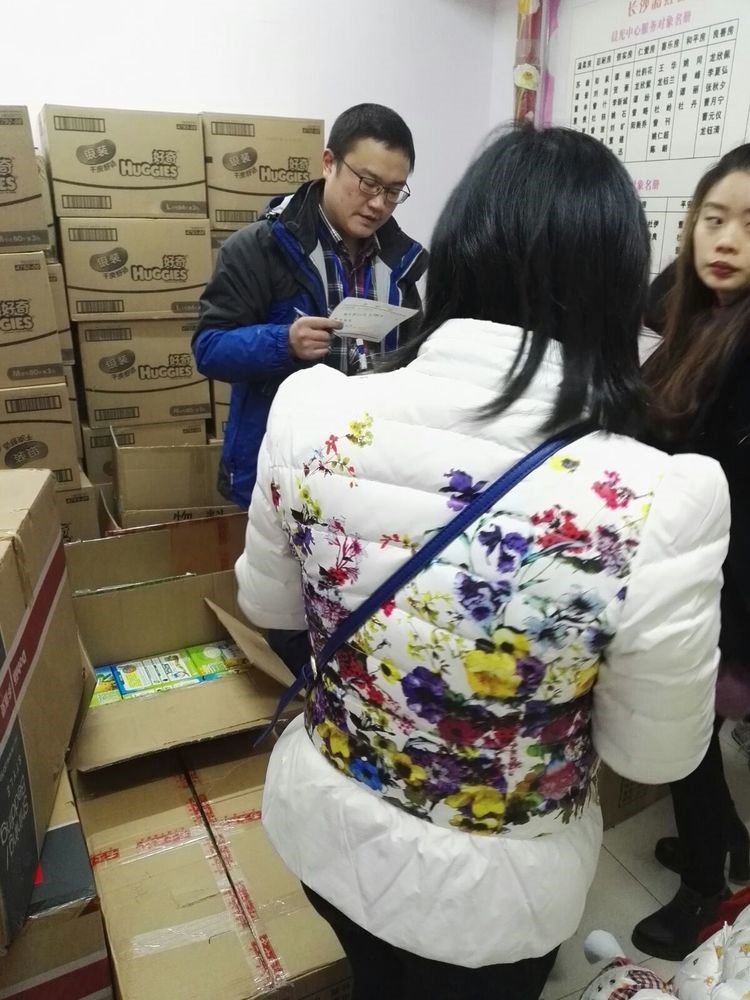 朱经理与福利院的工作人员办理交接手续。那个帅锅好像是俺老乡(听口音),非常负责,每个箱子都打开,一个一个点数。